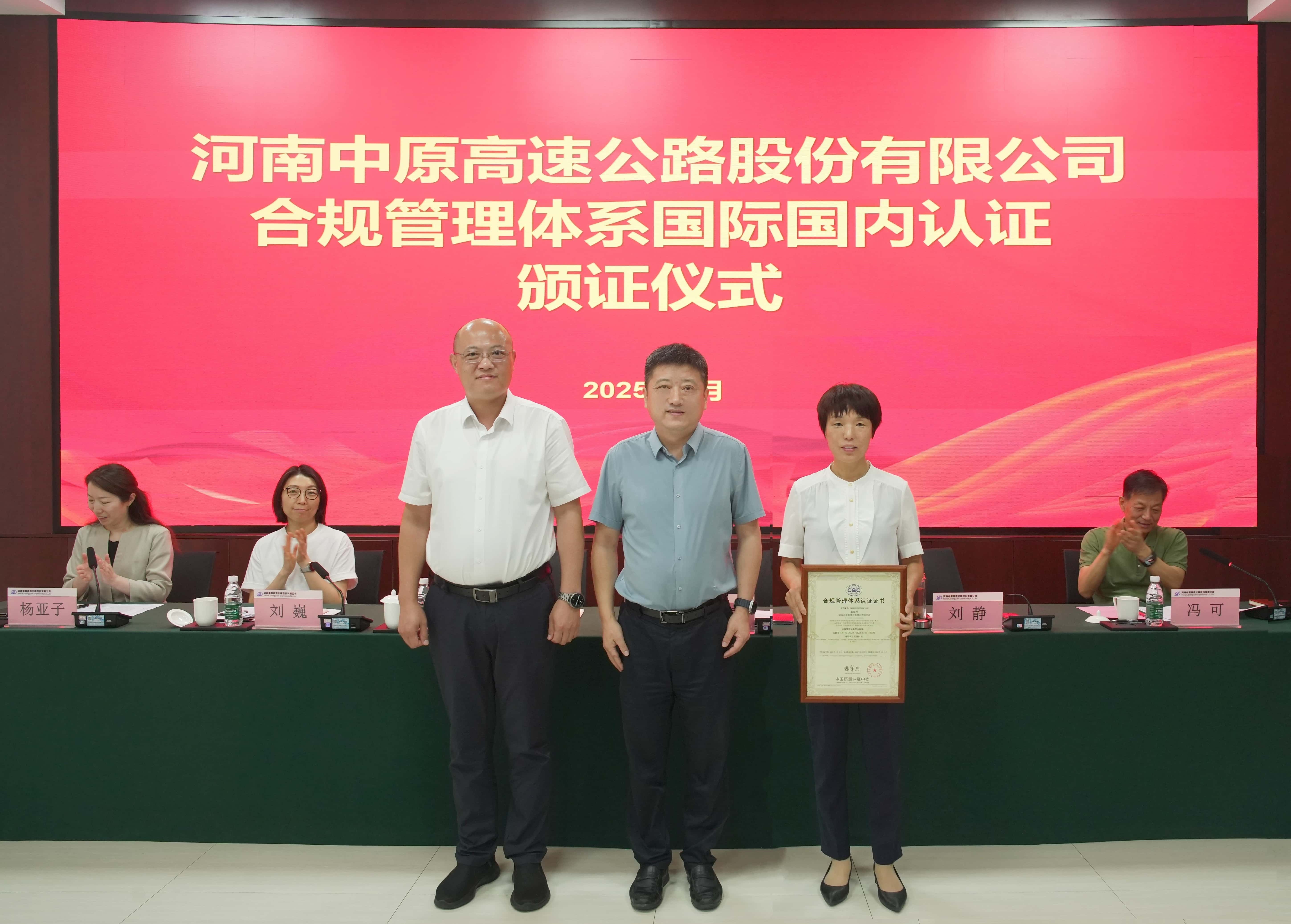 集團(tuán)黨委委員、副總經(jīng)理袁凍雷參加中原高速合規(guī)“雙認(rèn)證”頒證儀式并專題聽取科創(chuàng)工作匯報(bào)